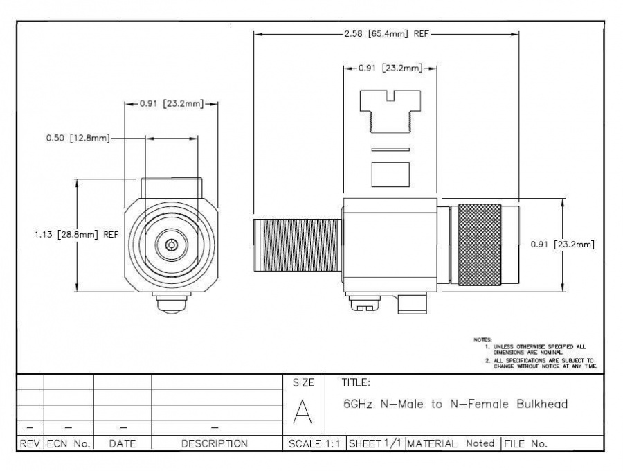 • Connectors N-Male to Bulkhead N-Female