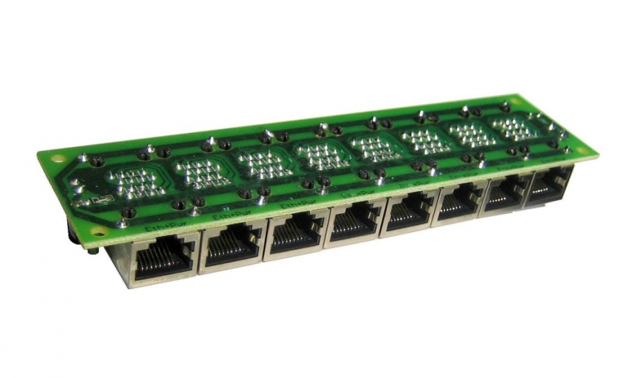 Panel integrující 8 pasivních POE injektorů vhodný pro napájení až osmi zařízení. Univerzální řešení pro vzdálené napájení většího počtu aktivních prvků s integrovaným extraktorem po UTP kabeláži.