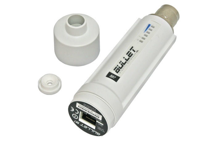 Bullet M2 HighPower je 802.11n outdoor CPE jednotka pro pásmo 2,4GHz, přímo osazena N(M) konektorem pro připojení k datové anténě bez použití pigtailu s integrovaným PoE extraktorem pro napájení po UTP.