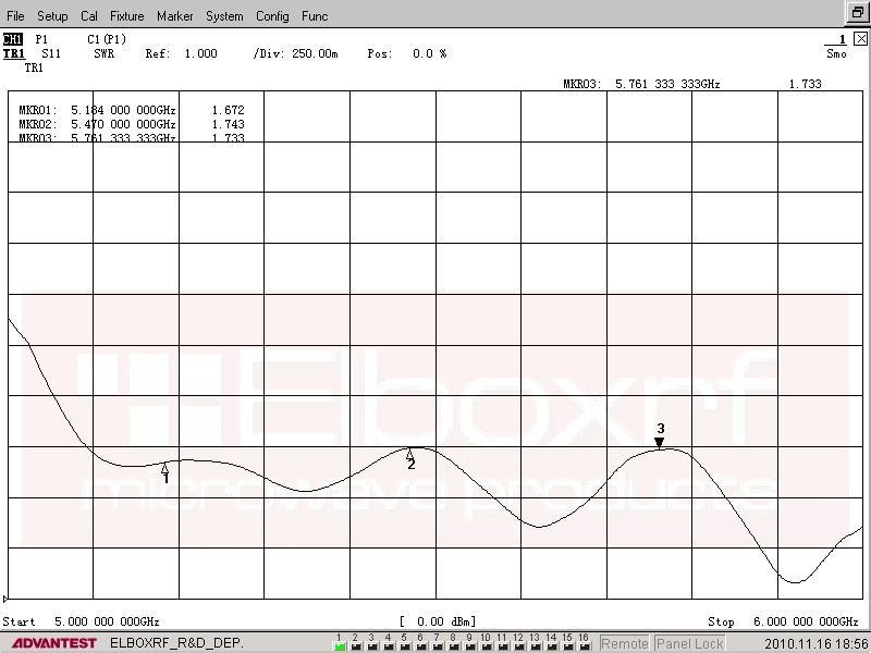 Hodnoty VSWR: 1,8 max v celém rozsahu spektra 5.15 - 6.1GHz