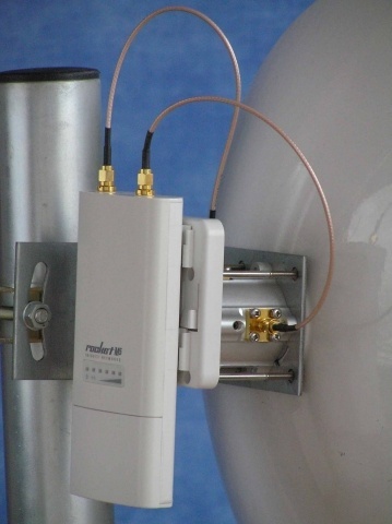 JIROUS • GentleKLIP par+pigtaily • Držák aktivního prvku k parabole (s pigtaily R-SMA/R-SMA)