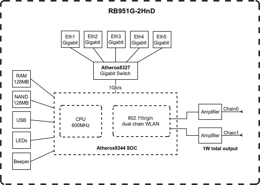 Profesionální síťové řešení, nová výkonnější (600MHz CPU, 128MB RAM, 5x GB LAN) verze RB řady 951 nahrazuje RB751G-2HnD, vychází z požadavků na řešení domácích WiFi sítí při zachování vysoké parametrové výbavy.
