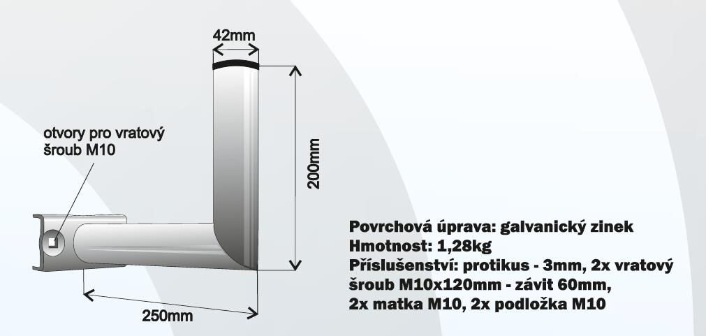 • balení: 1x protikus (tl.materiálu 3mm), 2x vratový šroub (10x120mm, závit 60mm), 2x podložka, 2x matka