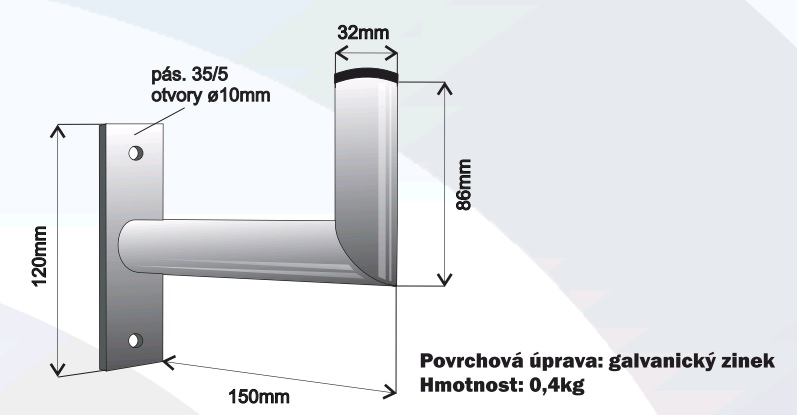 WiFiHW • KON-2-15 • Dvoubodová konzole na zeď, 15cm, průměr trubky držáku 32mm
