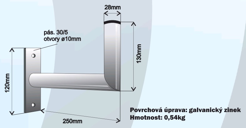 WiFiHW • KON-2-25 • Dvoubodová konzole na zeď, 25cm, průměr trubky držáku 28mm
