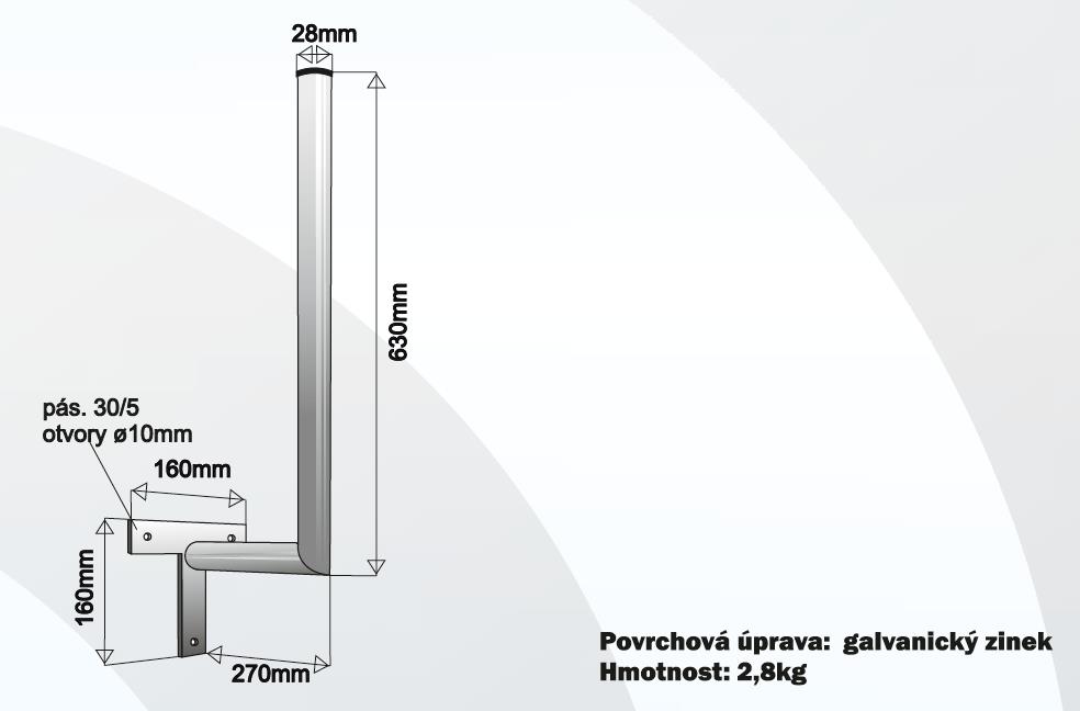 Tříbodová konzole k připevnění na fasádu se 63cm stožárkem pro uchycení WiFi antén či parabol.