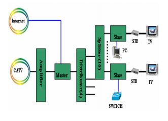 Jednoduše použitelné zařízení pro zapojení budovy k internetu po společném koaxiálním rozvodu. Umožňuje komunikaci mnoha jednotek po jediném koaxiálním vedení signálovou rychlostí až 700Mbps.