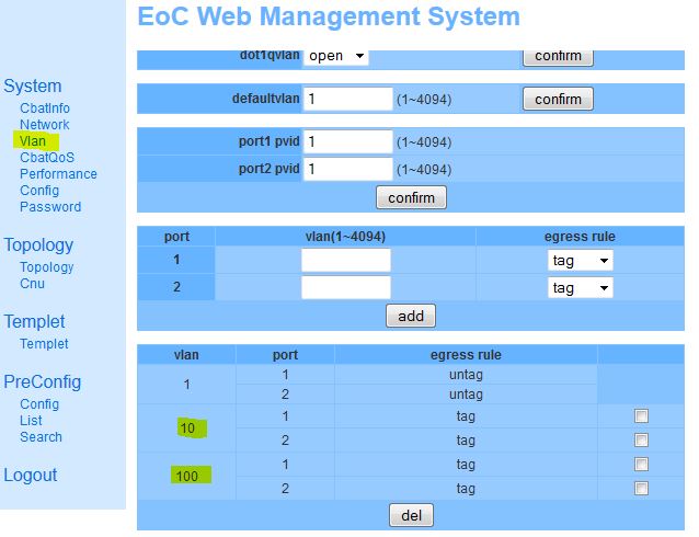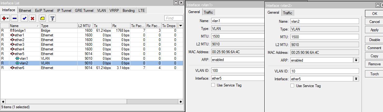 • nastavení VLAN 802.1Q pro management rozhraní masteru