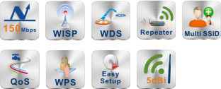 • Wireless Mode: AP, WDS, AP + WDS, Repeater, Client, Multiple AP