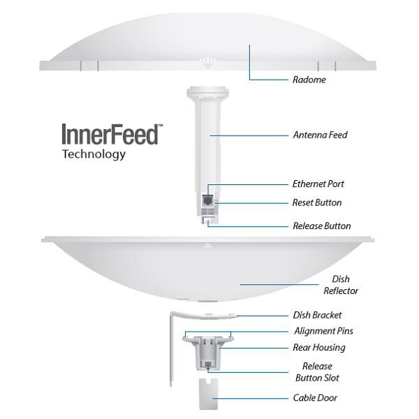 Pro vysoké přenosové rychlosti jednotka využívá standard 802.11ac a technologii AirMAX (TDMA) pro dosažení nízkých latencí.