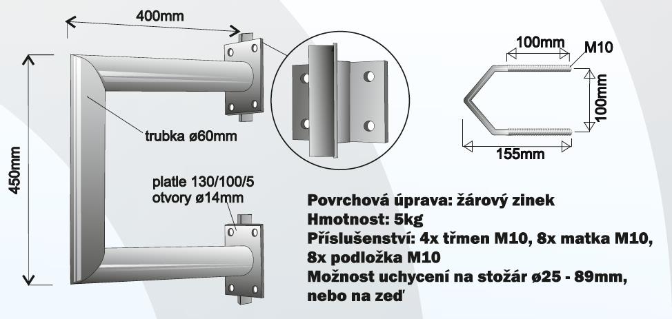 • Obsah balení: Držák, 4x Třmen s maticemi