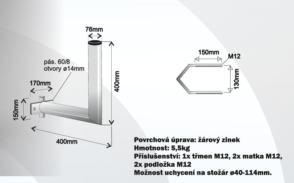 WiFiHW • KON-STOZ-PROFI • Držák antény na stožár PROFI - 40 cm, průměr 76 - žárový zinek