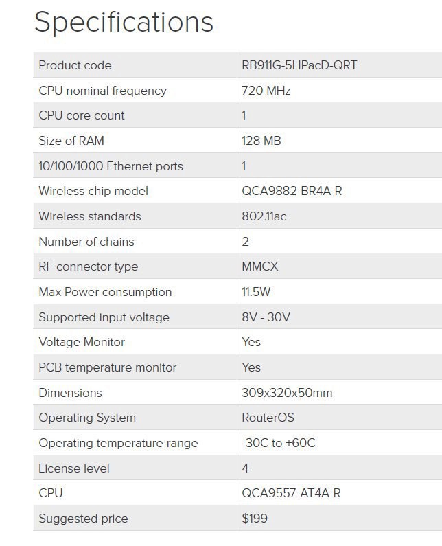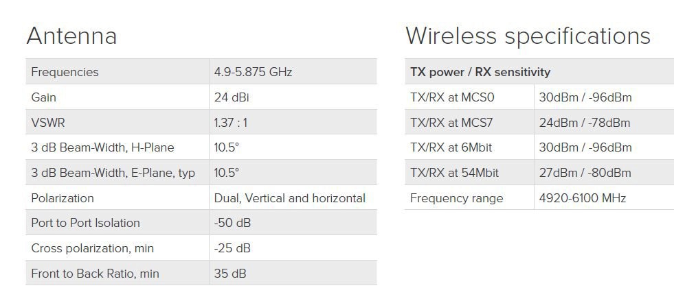 RouterBoard s integrovaným 802.11ac modulem zpětně kompatibilním s 802.11a/n standardem ve vodotěsném UV odolném boxu s integrovanou dvoupolarizační panelovou anténou o zisku 24dB a gigabitovým RJ45 portem.