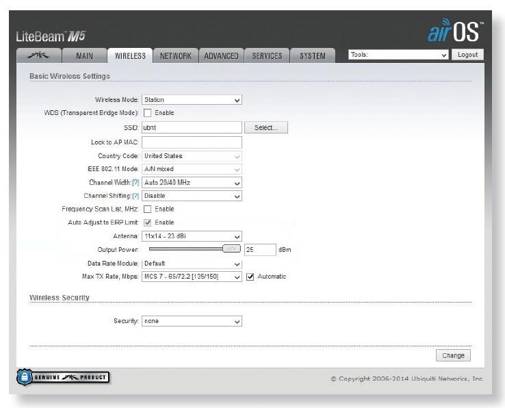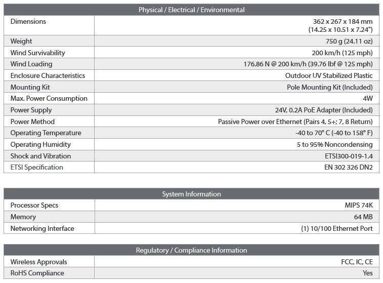 Pro vysoké přenosové rychlosti jednotka využívá standard 802.11an a technologii AirMAX (TDMA) pro dosažení nízkých latencí.