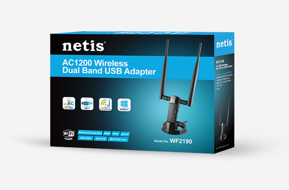 Netis WF2190 je USB WiFi klient, který je určen pro připojení počítače, notebooku nebo jiného zařízení k bezdrátové síti a připojení vysokorychlostního internetu. Je kompatibilní s 802.11a/b/g/n/ac zařízeními a poskytuje bezdrátový přenos na frekvenci 2.4GHz až 300Mbps nebo na frekvenci 5GHz až 867Mbps, nabízí skvělý výkon na on-line hraní her, streamování HD videa a VoIP telefonování.