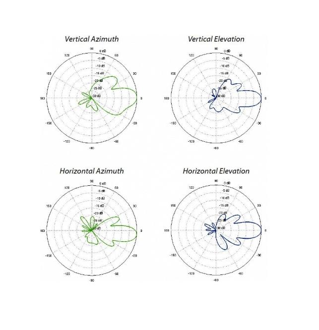 Anténní systém se skládá ze dvou 16 dBi antén (MIMO) s lineární horizontální a vertikální polarizací.