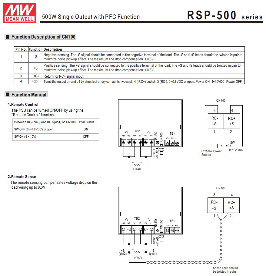 • Remote On/Off Control, Remote Sense Function