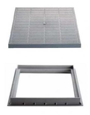 Víko plastové s rámem pro komory Hidrostank, 450x450mm, bez zamykání, barva šedá. Plastová víka s rámem je možné do komor Hidrostank připevnit vyvrtáním otvoru pro šroub, či vrutem. Stejně jako u litinových verzí vík Hidrostank výrobce doporučuje obbetonování víka a svrchní části komory do hloubky 10-15 cm.