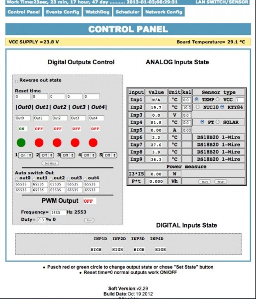 LAN Controller je jednoduché, ale inovativní zařízení. Modul slouží jako webový server, který pomocí hodnot různých senzorů umožňuje ovládat až 5 výstupů.