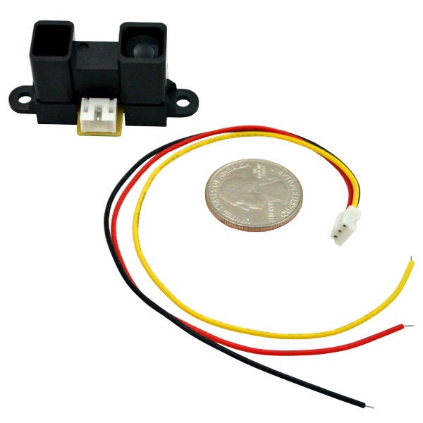 Analogový senzor k měření vzdálenosti s použitím infračerveného světla. Propojovací kabel je součástí balení.