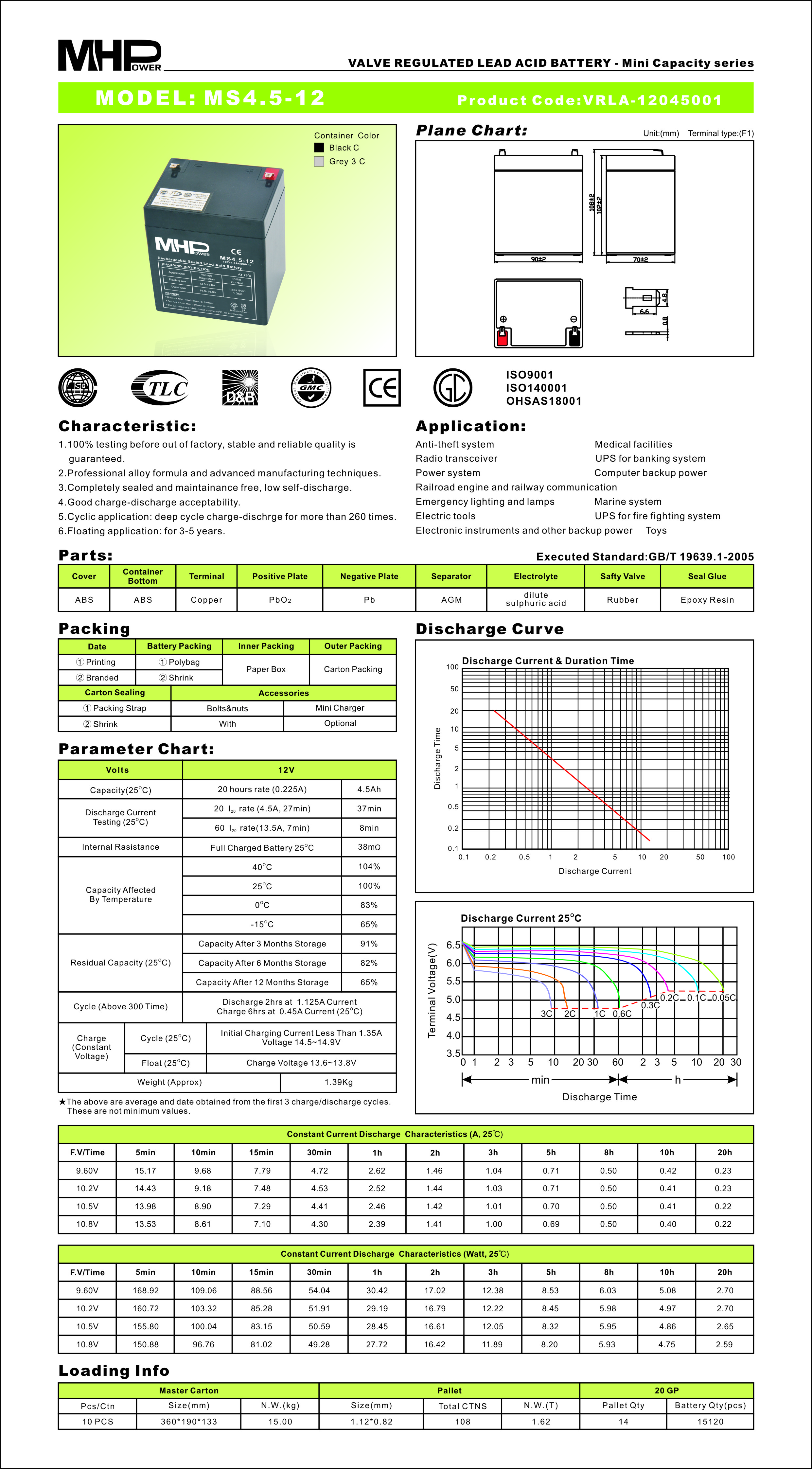 MHPower battery • MS4.5-12 • Hermetizovaný Pb akumulátor VRLA AGM 12V/4,5Ah