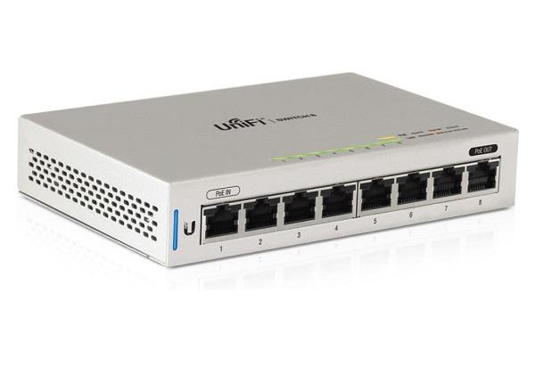 UniFi Switch US-8 je výkonný gigabitový switch vhodný pro podnikovou síť s centralizovanou správou umožňující PoE napájení switche a jednoho UniFi zařízení na výstupu.