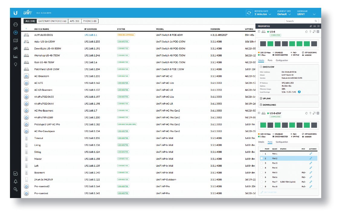 UniFi Switche jsou součástí platformy UniFi SDN (Software-Defined Networking), která umožňuje dohled a řízení koncových zařízení v síti, vše přehledně v grafickém rozhraní UniFi Controller.