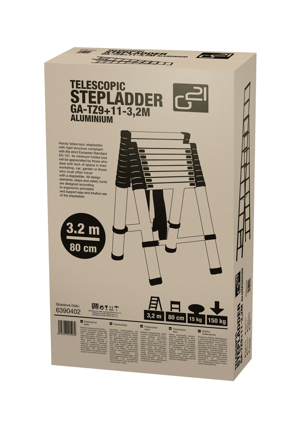 Hliníkový teleskopický žebřík G21 GA-TZ9+11-3,2M je původně vyvinutý pro profesionály. Jedná se o špičkový model, který se vyznačuje dostatečně pevnou a odolnou konstrukcí, díky systému duralových profilů. Na jeho konstrukci byly využity lehké hliníkové materiály, které snižují jeho celkovou hmotnost a zároveň zabezpečují jeho složení do minimální úložné velikosti.