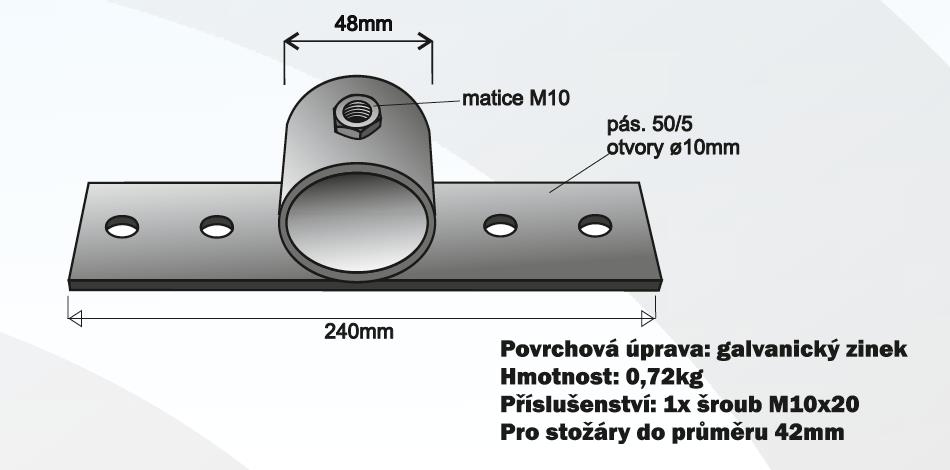 Držák pro upevnění stožáru přímo na zeď s dlouhým pásem se čtyrmi otvory pro šrouby. Lze si vybrat pro jaký průměr stožáru bude použit do průměru 4,2cm