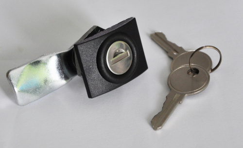 Zámek na klíč ke všem venkovním rozvaděčům OCRACK. Průměr zámku v místě, kde se vkládá do dveří - 19mm. Velikost venkovní, krycí části - 28x39mm.