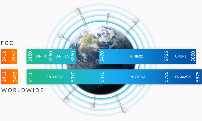 Provozovatel zodpovídá za nastavení příslušného rozsahu povolených kmitočtů tak, aby zařízení nevysílalo na kmitočtech určených pro stacionární meteorologické radary - 5630MHz a 5645 MHz.