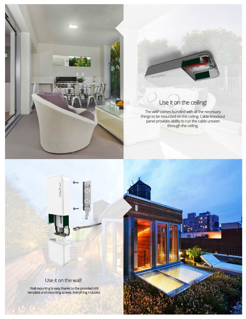 Jednotku lze použít jako přístupový bod, wAPR má integrovaný PoE splitter umožňující napájení po UTP kabelu.