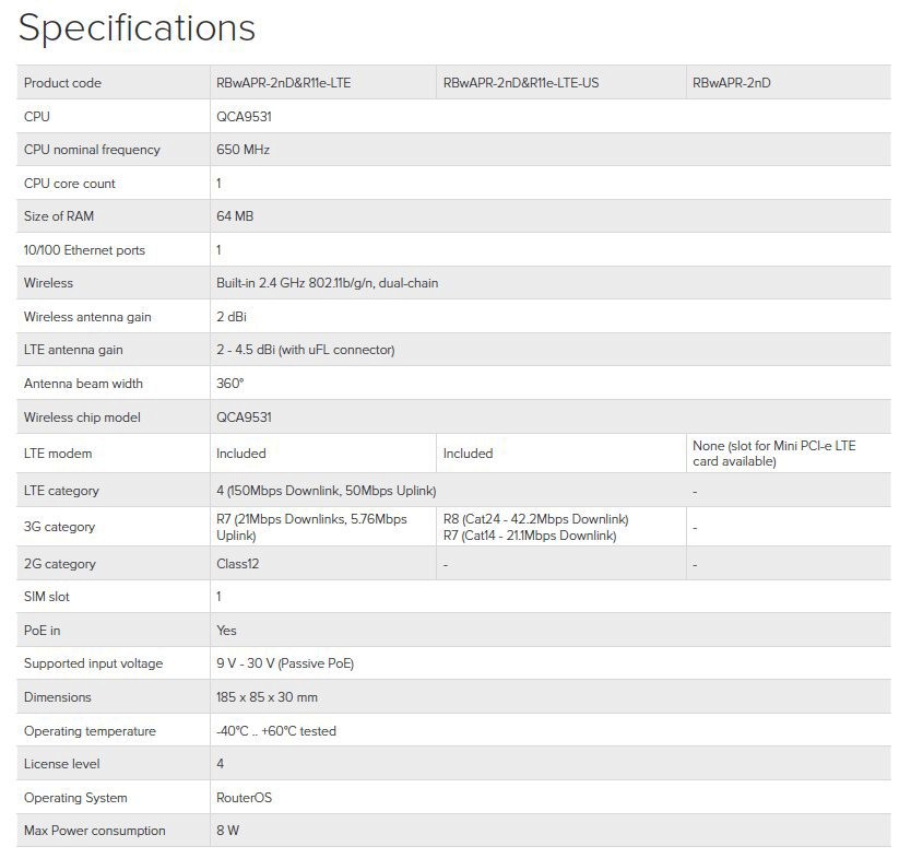 mANT LTE je všesměrová anténa designována pro nasazení v LTE pásmu. Příslušenství k LTE modelové řadě zařízení Mikrotik (wAP LTE, LtAP série). Anténa disponuje ziskem 5dBi a zlepší příjem v oblastech s horším pokrytím signálem.