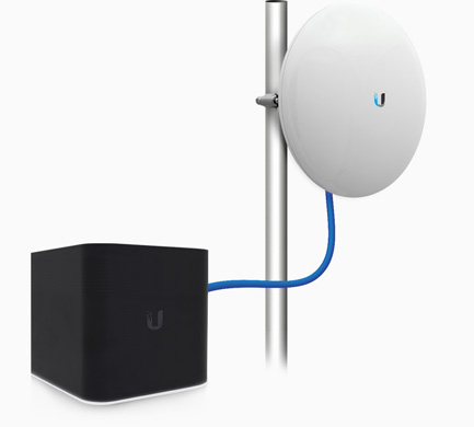 Díky POE Out výstupu lze z airCube napájet přímo klientské jednotky Ubiquiti airMAX M5, takže pro napájení obou zařízení poslouží pouze jeden zdroj.