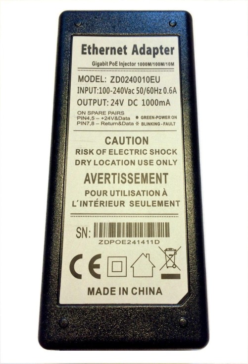 WiFiHW • GBPOEIN-24V/1A • Gigabitový 24V zemněný napájecí zdroj s integrovaným POE