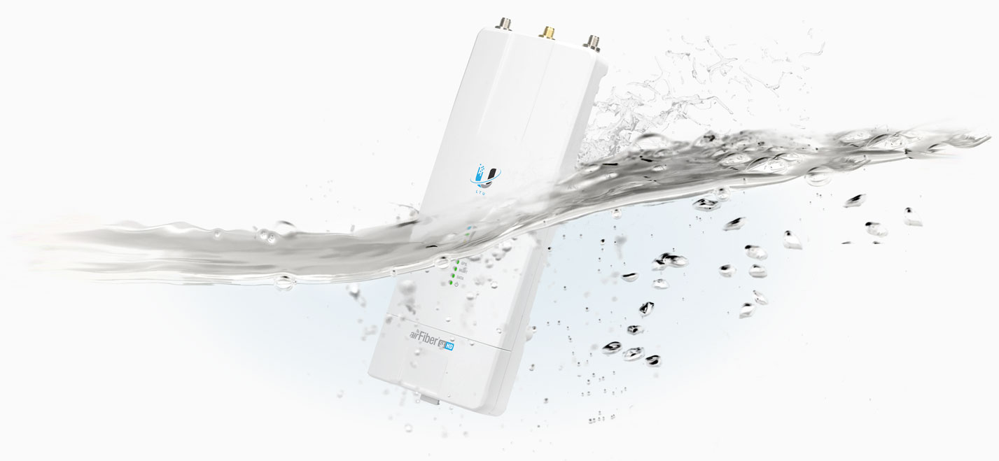 AirFiber 5XHD je díky konstrukci a přiloženému gumovému adaptéru odolný vůči vodě a je ideální pro jakékoli povětrnostní podmínky.
