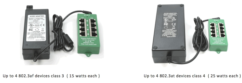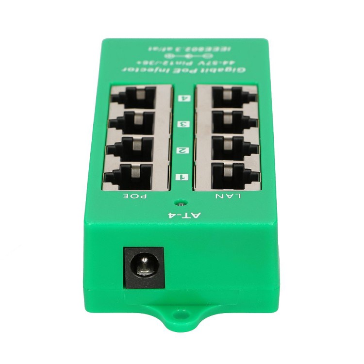 Panel integrující čtyři gigabitové POE injektory s napájecím rozsahem 44-57V a max. výkonem až 25W/port s podporou standardu 802.3af/at.