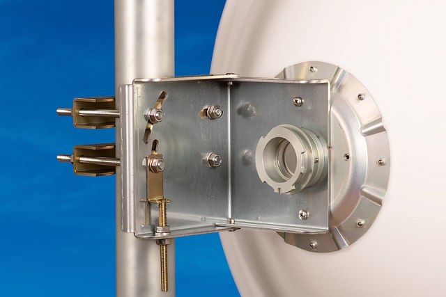 anténa pro UBNT PrismStation s vlnovodovým bajonetem, precizní, masivní držák JDMW-900 vyvinutý pro profesionální mikrovlnné spoje, jemné nastavení elevace a azimutu