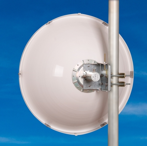 Dvoupolarizační anténa Full duplex nebo MIMO, horizontální/vertikální nebo 2x45° polarizace, vysoká izolace mezi konektory umožňuje plně duplexní spoje, hluboká parabola zvyšuje izolaci mezi jednotlivými anténami na stožáru a zlepšuje vyzařovací diagram