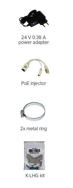 - 1x montážní příprava k uchycení jednotky na stožár/konzoli (K-LHG Kit, 2x spona)