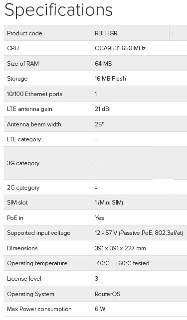 MIKROTIK • RBLHGR • Outdoor jednotka LHG pro LTE síť
