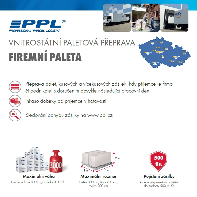 Přeprava palet, kusových a vícekusových zásilek, kdy příjemce je firma či podnikatel s ovyklým doručením do dvou pracovních dnů.