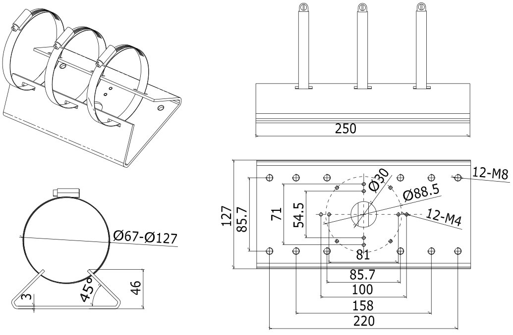 • Určeno na stožár o průměru [mm]: 67 až 127