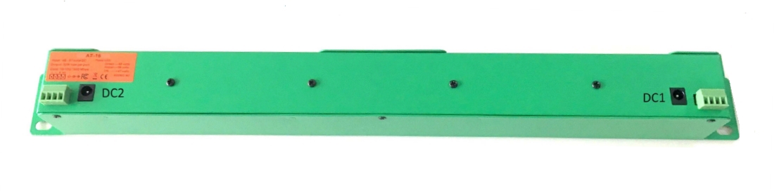 Vstup pro napájení prostřednictvím dvou standardních napájecích 2.1mm jacků nebo prostřednictvím panelových konektorů se svorkovnicí.