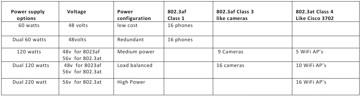 Maximální povolené příkonové hodnoty napájecího zdroje na vstupu do POE panelu: 48/56V 220W