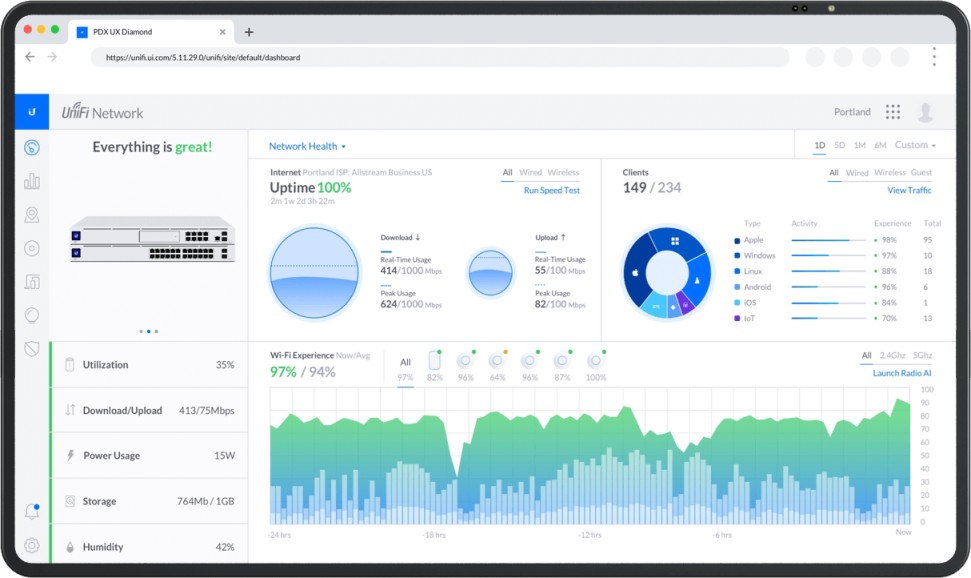 UAP-FlexHD je ovládatelný přes UniFi Controller. Ovládejte všechna vaše zařízení s pomocí UniFi Dream Machine Pro.