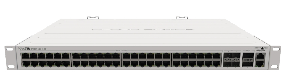 Cloud Router Switch CRS354-48G-4S+2Q+RM je výkonný switch s 48x GB RJ45 porty a 4x 10GB SFP+ porty v rack provedení s redundantním napájením.