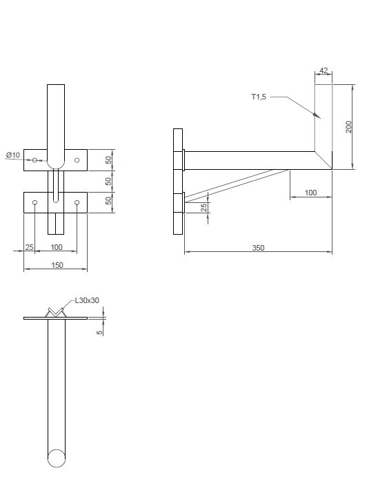 Držák s vinklem, dvojitým uchycením a podpěrou pro uchycení antén na stožár