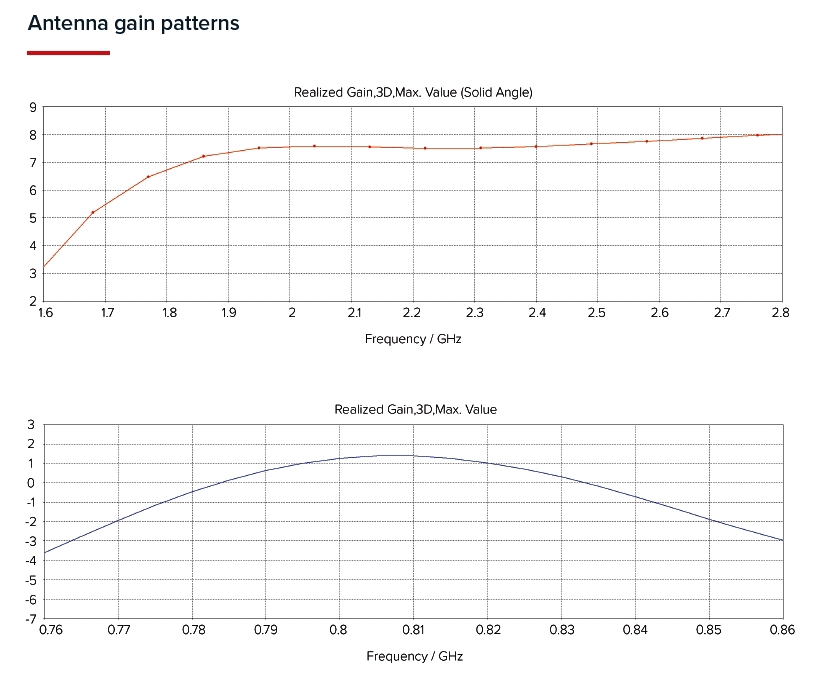 Internal antenna gain 8 dBi