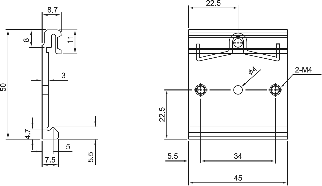 Montážní DIN příchytka úzká pro montážní úhelníky a desky.